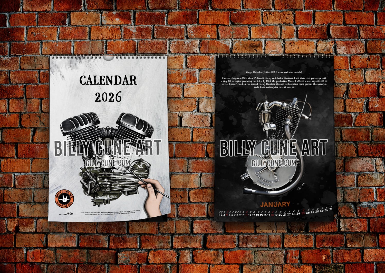 Po ponad dziewięciu miesiącach szkicowania, tuszowania, cieniowania i dopracowywania – nowy Billy Cune Art Engine Calendar 2026 wreszcie nadchodzi. Ta limitowana, ręcznie sygnowana i numerowana edycja kontynuuje tradycję zapoczątkowaną pięć lat temu, kiedy to kalendarz z 2021 roku zapoczątkował serię.